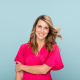 Since the color of the clutch is already eye-catching, I recommend keeping the rest of your accessories subtle – nude nails and gold jewelry will keep your outfit looking classy!
